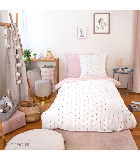 LINNEA Parure de lit 140x200 cm double gaze de coton fiori rose 2 pièces