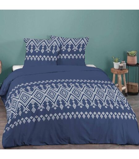 PARURE DE LIT NORDA BLEU 240x220 CM Parure de lit imprimée composée d'une housse de couette 240x220 cm et 2 taies 63x63 cm Ambiance éthnique avec cette parure de lit imprimée avec des lignes formant des motifs de losanges et autres fomes abstraites das des tons de blanc sur fond bleu nuit. La collection linge de lit NORDA BLEU en coton est idéale pour une décoration de chambre graphiques et contemporaines. Housse de couette avec une face imprimée en partie basse de lignes formant des motifs de losanges et autres fomes abstraites das des tons de blanc sur fond bleu nuit, et sur l'autre face uni bleu. Finition sans rabat aux pieds, fermeture par boutons, et passe-mains pour enfiler la couette facilement. Taie d'oreiller carrée avec deux faces imprimées identiques coordonnée à la parure. Finition simple, forme portefeuille avec un rabat intérieur. Côté technique : Matière : 100% coton Qualité : coton 110 g/m2 57 fils/cm2 Couleurs garanties grand teint Housse de couette avec finition sans ...
