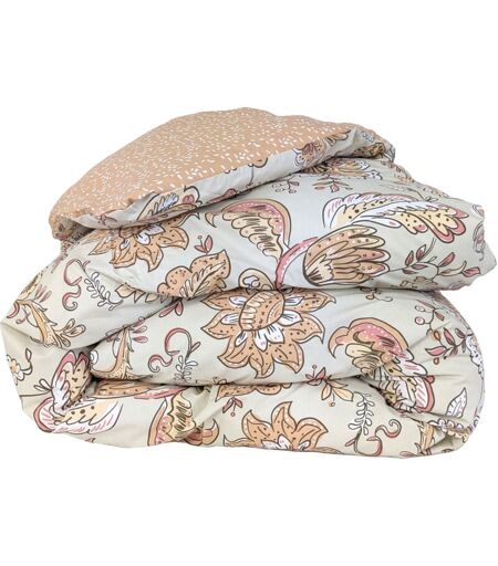 HOUSSE DE COUETTE SANTAL MELBA 140x200 CM Ambiance ethnique indienne pour cette parure de lit avec des arabesques florales revisitées dans un camaïeu de rose, taupe et rosé sur fond beige clair, le tout réhaussé par un point de recouvrement marron taupe et un mini-motif "grain de riz" associé sur fond pêche. La collection linge de lit SANTAL MELBA en percale apportera une touche raffinée à votre chambre avec des tons doux et chaleureux. Housse de couette reversible avec une face imprimée d'un motif d'arabesques florales dans un camaïeu de rose, taupe et rosé sur fond beige clair, sur l'autre face motif mini "grain de riz" blanc sur fond uni pêche. Finition rabat de maintien de 37 cm aux pieds, forme cheminée . Linge de lit imprimé en percale avec un tissage 80 fils/cm2 très serrés pour une grande résistance et une excellente tenue. Traité Easycare pour un repassage facile. Composez vous même votre parure à vos dimensions de lit grâce à tous les articles disponibles en vente à l'unité. ...