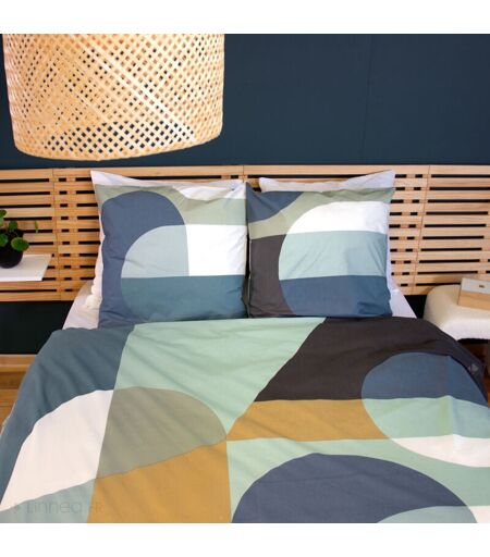Parure de lit 260x240 cm en coton JOELE motif géométrique vert et bleu 3 pièces Transformez votre chambre avec l'élégance moderne et artistique de la parure de lit de la collection JOELE. Les nuances de bleu, vert et jaune moutarde se fondent harmonieusement pour créer une atmosphère relaxante et contemporaine. Engagée dans une démarche éthique, la parure JOELE est certifiée sans substances nocives, respectant ainsi les normes de sécurité pour la santé. Sa fabrication repose sur des pratiques responsables, avec un souci constant de durabilité et de respect de l'environnement. Côté technique : Composition : 100% coton Matière : Coton Tissage : 57 fils/cm2 1 housse de couette avec finition sans rabat, fermeture boutons et passe-mains 2 taies d'oreillers carrées 63x63 cm forme sac avec rabat Motif : Géométrique Coloris : Tons verts,bleus et jaune Fabriqué au Pakistan Les plus du produit : Douceur et légèreté Réversible Collection JOELE disponible en parure de lit 240x220cm avec 2 taies ...