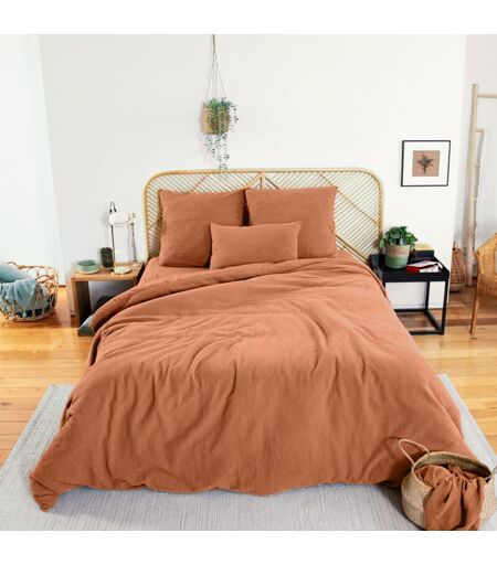 Parure de lit 240x220 cm double gaze de coton GAZGAZ caramel 3 pièces Améliorez la qualité de votre sommeil avec la parure de lit Gazgaz. Avec un côté 100% coton et un autre en double gaze de coton, elle vous apportera une douceur inégalée avec un effet gauffré et une grande facilité d'entretien. Le gaze de coton correspond à une superposition de deux tissus fins obtenus par un tissage de fils entrecroisés et assemblés par des points invisibles à intervalles réguliers. Vous aurez le choix entre plusieurs couleurs automnales pour une ambiance cocooning garantie ! Côté technique : recto double gaze de coton 140g/cm2 et verso 100% coton 57 fils/cm2 Couleurs garanties grand teint 1 housse de couette avec finition sans rabat, fermeture boutons et passe-mains 2 taies d'oreiller carrées 63x63 cm forme sac avec rabat Fabriqué au Bangladesh Les plus du produit : Le gaze de coton encore plus doux que le coton ! Linge de lit certifié Standard 100 OEKO-TEX, pour des produits sans substances ...
