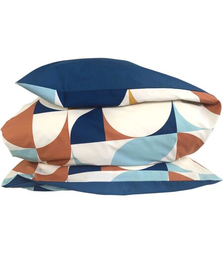 Housse de couette 140x200 cm collection MODULO en percale de coton Plongez dans un monde de design moderne et de dynamisme avec la housse de couette MODULO. Cette création audacieuse apporte une touche de vivacité et de style à votre chambre à coucher, grâce à ses motifs géométriques vibrants et ses couleurs lumineuses. Sur le recto de la housse de couette, un jeu de formes géométriques s'entremêle avec harmonie, créant un motif captivant où se mêlent le bleu cobalt profond, l'orange éclatant, le bleu clair rafraîchissant et le jaune vif, le tout sur un fond blanc éclatant. Ces couleurs contrastées et dynamiques apportent une énergie positive à votre espace de sommeil, transformant votre chambre en un lieu de vie inspirant et plein de vitalité. à l'arrière, le verso uni bleu cobalt offre une alternative élégante et sophistiquée. Fabriquée en percale de coton 80 fils/cm2, cette housse de couette offre une sensation de douceur et de confort exceptionnelle, pour des nuits de sommeil ...