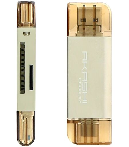 Lecteur de Carte SD et Micro SD 3 en 1 USB Micro USB et USB Type C Akashi Gris