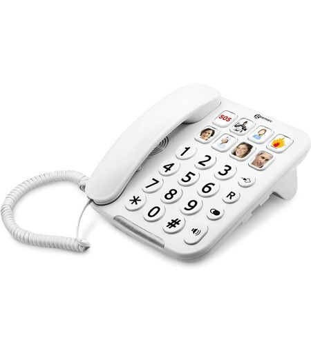 Téléphone Fixe Senior Amplifié Réglable Touches Photo PhotoPhone 110 Geemarc Blanc