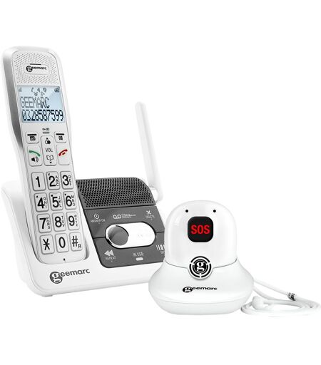 Téléphone Sans Fil Amplifié avec Répondeur et Pendentif SOS Geemarc Blanc