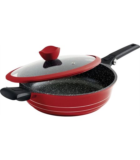Quel bonheur dutiliser cette sauteuse Pradel pour réussir à coup sûr vos pommes de terre rôties, votre ratatouille, vos sautés de viande et toutes autres préparations culinaires ! A mi-chemin entre la casserole et la poêle, cette sauteuse permet de saisir, dorer, faire bouillir, frire, et sauter tous vos aliments ! Elle bénéficie en plus, dun revêtement antiadhérent vous assurant une cuisson saine, ne demandant que très peu de matière grasse. La sauteuse idéale pour la cuisine de tous les jours Polyvalente, vous utilisez cette sauteuse au quotidien ! Elle est en plus, équipée d'un couvercle en verre avec valve anti-débordement pour cuisiner en toute sécurité ! Son manche amovible est quant à lui, pratique pour un rangement optimisé. - Corps en fonte d'aluminium - Revêtement aux propriétés antiadhérentes multicouches sans PFOA - Couvercle étanche en verre avec bords en silicone - Manche amovible en plastique, avec système de sécurité - Capacité 5,2 L - Légère et conductrice de chaleur - Compatible tous feux, dont induction - Disponible en 2 tailles : - ø28 x 8 cm Capacité : 4,1 L - ø30 x 8,5 cm Capacité : 4,9 L ...