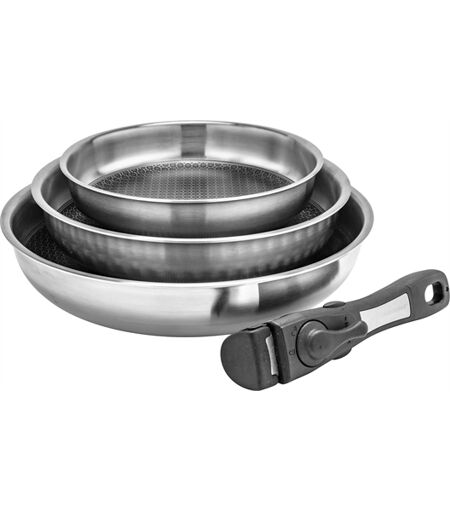 Cette poêle Pradel a un atout incroyable : avec elle, rien n'attache à la surface ! Elle est conçue avec une structure en relief permettant aux matières grasses d'être retenues dans la texture "nid d'abeille" pour mieux colorer, dorer et caraméliser vos plats tout en limitant l'ajout de graisses. C'est LA poêle idéale pour donner du croustillant à vos préparations culinaires ! La meilleure poêle pour une cuisson homogène Cette poêle offre une cuisson homogène en n'utilisant que peu de matière grasse. Un ustensile de cuisson parfait pour cuire, dorer et colorer poissons, viandes et légumes en toute simplicité ! - En acier inoxydable - Structure en relief, alvéolée antiadhérente - Homogénéité de la cuisson - Compatible tous feux, dont induction - Disponible en 3 tailles : - ø20 x 4 cm - ø24 x 5 cm - ø28 x 6 cm - Livré sans manche ...