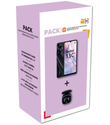 PACK SMARTPHONE XIAOMI REDMI 13C 6,74 5G DOUBLE SIM 128 GO NOIR + REDMI BUDS 6 PLAY