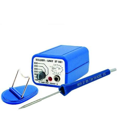 La plus petite station de soudage au monde!!! Dans la lignée de son grand frère, ce micro fer à souder de fabrication allemande effectuera de petites soudures à l'étain, gr ce à sa mini panne. La petite taille du fer ainsi que son fil fin et souple rajoute au confort de travail. - Température réglable de 100 à 400 . - 10 W (chauffe en 30 sec.) - Alimentation en 220 volts. - Support de fer fourni. ...