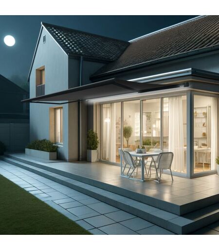 INTERSUN Store banne coffre intégral hevoa 6,00x3,50 m (Motorisé Secours à Télécommande + led - Gris anthracite structuré RAL7016ST - Gris graphite)