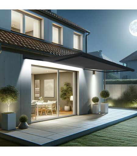 INTERSUN Store banne coffre intégral soa 5,00x3,50 m (Motorisé Secours à Télécommande + led - Gris anthracite structuré RAL7016ST - Gris graphite)