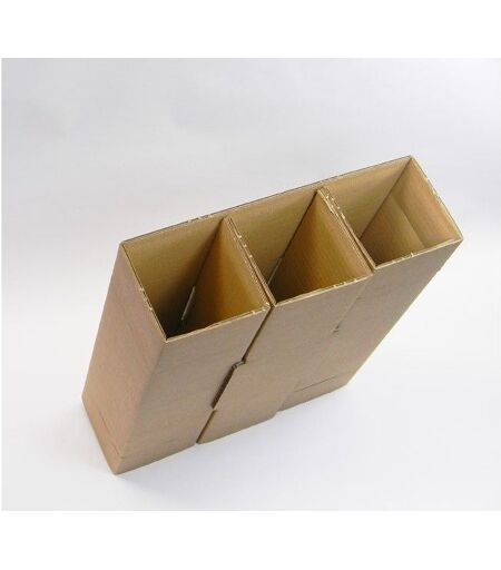 Croisillons pour 3 bouteilles à former manuellement pour séparer chaque bouteille (vendu sans l'emballage extérieur) -> 1 exemplaire permet d'insérer de caler jusqu'à 3 bouteilles -> 2 exemplaires superposés permettent d'insérer jusqu'à 6 bouteilles -> 3 exemplaires superposés permettent d'insérer jusqu'à 9 bouteilles -> etc... Pour toutes les formes de bouteilles 75 cl ou demi-bouteilles 37,5cl (Alsace, Bordeaux, Bourgogne, Champagne, Crémants, etc...) Notre conseil : pour une protection optimale, caler avec du film bulle * OFFRE DE LANCEMENT : nous offrons avec ce produit 1 rouleau de film bulle d'air - Format à plat = 1156 x 360 mm - Format une fois monté = 300 x 105 x 360 mm (encombrement) - Qualité simple cannelure 2.30 BC - Excellente finition avec extérieur écru (marron) - Très bonne résistance - Idéal pour vos expéditions de 2 ou 3 bouteilles -> avec 1 exemplaire - Idéal pour vos expéditions de 4, 5 ou 6 bouteilles -> avec 2 exemplaires - 100% recyclable. - Livré à plat = gain ...