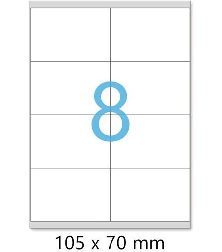 Etiquettes A7 autocollantes blanches en planches A4 de 8 étiquettes COINS VIFS Planche de 8 étiquettes A7 format individuel 105 x 70 mm Ces étiquettes sont idéales pour imprimer : - l'identification de vos CARTONS ou PALETTES - les adresses de vos destinataires, - des instructions de livraison pour les transporteurs, - les références de vos produits, les codes barre, etc... - des fiches produits à apposer sur vos palettes ou cartons, - des fiches d'inventaires, - des fiches affaires à coller sur vos dossiers, etc... - Papier laser blanc 75 g/m² - Convient pour imprimantes LASER - JET D'ENCRE - COPIEURS - Taille d'une étiquette = 105 x 70 mm - Coins vifs L'étiquette aux multiples applications, très facilement personnalisable selon vos besoins ! Protégez l'environnement ! - papier issu de forêts gérées durablement ...