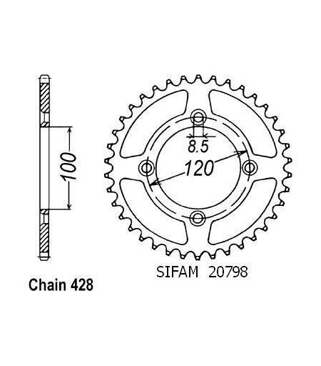 Couronne Suzuki / Yamaha 80/85 Yz/Rm 1993-2008 - 428 - 54 Dents - Similaire JTR798 - SIFAM ...