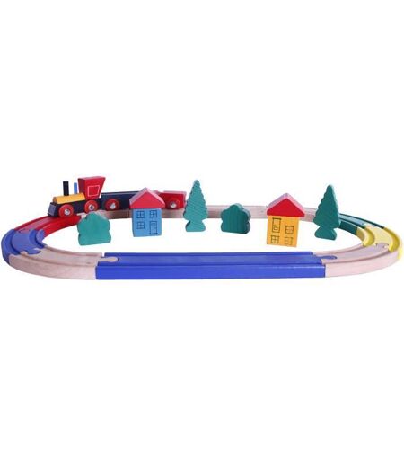 Circuit de train en bois avec accessoires (Locomotive avec wagon, 2 maisonnettes et 4 arbres de décoration. dimensions du coffret : 40*26*4.5 cm ...