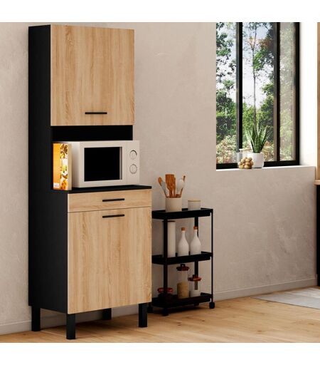 IDMarket Buffet De Cuisine 60 Cm Cina 2 Portes + Tiroir Noir Et Façon Hêtre