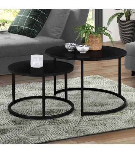 IDMarket Lot De 2 Tables Basses Gigognes Davis Rondes 54/70 En Métal Noir Mat Design Industriel