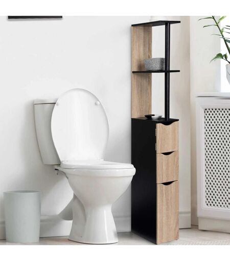 Meuble Wc Étagère Bois Willy 3 Portes Noir Et Hêtre