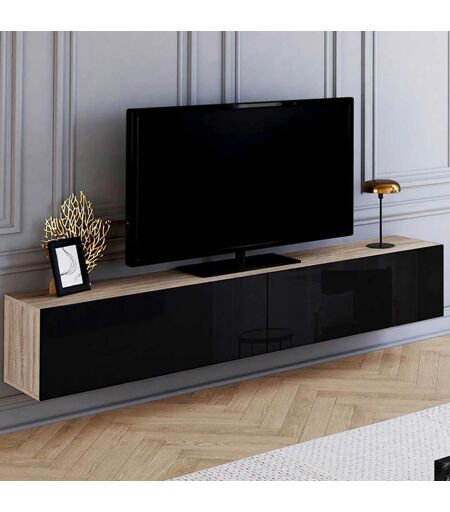 IDMarket Meuble Tv 180 Cm Suspendu Elio 2 Portes Bois Et Noir