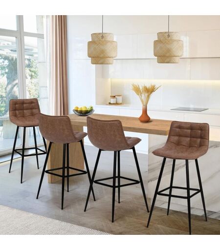 IDMarket Lot De 4 Tabourets De Bar Mady Marron Vintage