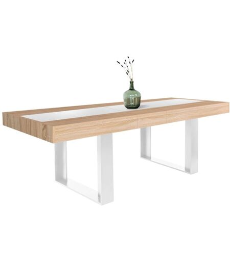 Idmarket - Table à manger extensible rectangle phoenix 4-8 personnes bois et blanc bande centrale blanche 160-200 cm