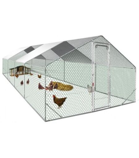 Si vous avez beaucoup de poules, il vous faudra un grand parc pour poules afin qu'elles aient de l'espace pour se sentir à l'aise tout en étant en sécurité. ID Market vous propose un grand enclos à poules grillagé 2 M de haut capable d'accueillir une vingtaine de poules. À un prix défiant toute concurrence, cet enclos XXL pour poules pondeuses est l'habitat idéal pour votre basse-cour ! Descriptif de l'enclos poulailler 24m2 parc grillagé 8x3 M Vous avez un grand jardin et vous souhaitez agrandir votre élevage de poules ? ID Market vous propose à prix cassé une cage à poules de 24 m² adaptée pour un élevage d'une vingtaine de poules. Cet enclos pour poules 8x3 M offre une très grande superficie permettant ainsi à vos poules de gambader et de découvrir ce qui les entoure. L'enclos poulailler en grillage galvanisé est la solution idéale pour assurer confort et sécurité à votre basse-cour. Vos poules ne sont pas confinées dans un espace trop réduit et de plus elles sont protégées à la fois du mauvais temps et des prédateurs. N'ayez plus crainte que des chiens, des renards, des oiseaux ou des chats viennent nuire à votre élevage grâce à cet enclos entièrement grillagé. De plus, ce parc pour poules de 24 m² est livré avec une bâche de toit imperméable en polyester et anti-UV qui protège vos poules tout au long de l'année. Votre basse-cour est ainsi protégée du froid, du gel et de la pluie mais également de la chaleur et des rayons du soleil. Rapide et simple à installer, cet enclos pour poules est en plus très pratique et s'ouvre facilement grâce à sa porte sécurisée avec loquet. Afin de compléter votre équipement, vous pouvez rajouter des poulaillers en bois disponibles également à prix très attractif sur IDMarket.com. Dimensions de l'enclos poulailler 24m² acier galvanisé - Dimensions totales hors-tout : Longueur 800 x largeur 300 x Hauteur 200 CM - Diamètre des tubes de la structure : 25MM - Taille des mailles : environ 25 MM x 25 MM - Piquet d'ancrage non fourni - Grillage vert ou gris selon arrivage Pour plus de facilité de montage, nous vous conseillons d'être 2 personnes (temps estimé : 60 min). Poulaillers en bois vendus séparément sur notre boutique en ligne. Retrouvez toutes nos différentes tailles d'enclos disponibles sur notre boutique en ligne : - Enclos poulailler 3m² parc grillagé - Enclos poulailler 6 m² parc grillagé - Enclos poulailler 9 m² parc grillagé - Enclos poulailler 12 m² parc grillagé - Enclos poulailler 16 m² parc grillagé - Enclos poulailler 18 m² parc grillagé Protégez vos volailles des prédateurs grâce à cet enclos à l'espace grillagé et bien sécurisé ! Robuste et sécurisé, l'abri propose un très grand espace détente de 24 m² pour tous vos animaux ! Pratique avec sa porte à fermeture à loquet, c'est l'habitat idéal pour une vingtaine de poules env. Équipé d'une bâche de toit waterproof et anti-UV, cet enclos offre une partie ombragée et abritée ! Dimensions : Longueur 8 x largeur 3 x Hauteur 2 M - Diamètre des tubes de... ...
