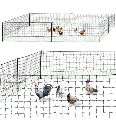 Description générale Élever vos poules en plein air est désormais possible avec le filet à poules de 24 m de long. Ce produit vous permet de garder vos volailles en sécurité dans votre jardin, tout en étant facile à installer et conçu avec des matériaux robustes. Grâce à sa porte pratique, l'accès au parc est simple et sécurisé. Spécifications techniques Longueur totale du filet : 24 m Hauteur totale du filet : 1,15 m Hauteur d'un piquet : 1,10 m Matériau : filet en plastique noir et vert Mailles : grosses mailles de 10 cm en haut, petites mailles de 4,5 cm en bas Compatibilité et accessoires Kit complet composé de : 1 filet 8 tiges double pointes en fibres de verre avec 16 vis 8 casquettes 8 crochets 4 fils 1 poteau de porte avec plaque et pièce de connexion 1 clou en plastique pour le poteau de porte 28 chevilles Installation Le filet est facile à installer grâce à ses tiges en fibres de verre robustes et aux accessoires fournis. Suivez les instructions incluses pour un montage ...