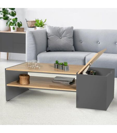 IDMarket Table Basse Bar Contemporaine Izia Avec Coffre Gris Et Bois