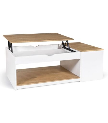Idmarket - Table basse plateau relevable elea - Coffre - Bois blanc - Façon hêtre - Blanc