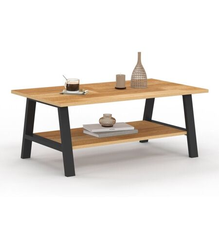 Donnez du caractère à votre salon avec cette magnifique table basse au design moderne. L'association du bois effet chêne clair pour les plateaux et du bois noir pour les pieds lui confère un style chaleureux et raffiné, idéal pour sublimer un intérieur contemporain comme plus classique.Le plateau supérieur, spacieux et robuste, accueille vos objets du quotidien : boissons, collations, télécommandes, mais aussi bougies ou vases décoratifs. Le plateau inférieur, tout aussi pratique, offre un espace de rangement supplémentaire pour vos livres, magazines, paniers ou boîtes, afin de conserver un salon toujours bien ordonné. Avec ses deux surfaces, elle combine esthétique et fonctionnalité pour répondre à vos besoins quotidiens.Ces pieds solides assurent une excellente stabilité et apportent une touche plus naturelle et chaleureuse au meuble. Les plateaux en panneaux de particules effet bois clair résistent aux petits chocs et se nettoient facilement d'un simple coup de chiffon.Optez pour ...