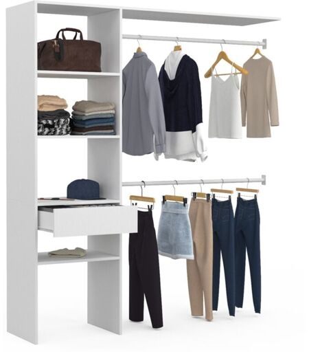 IDMARKET Kit dressing MELINE 160 x 40 x 180 cm blanc avec étagères + tiroir + double penderie
