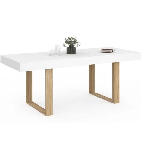 Idmarket - Table à manger extensible rectangle phoenix 4-8 personnes blanc pieds bois 160-200 cm