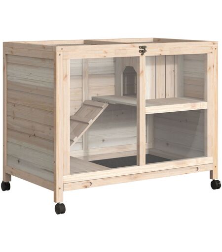 Pawhut - Clapier à lapin sur roulettes cage à lapin 2 niveaux toit ouvrant verrouillable plateau déjection coulissant rampe niche bois de sapin