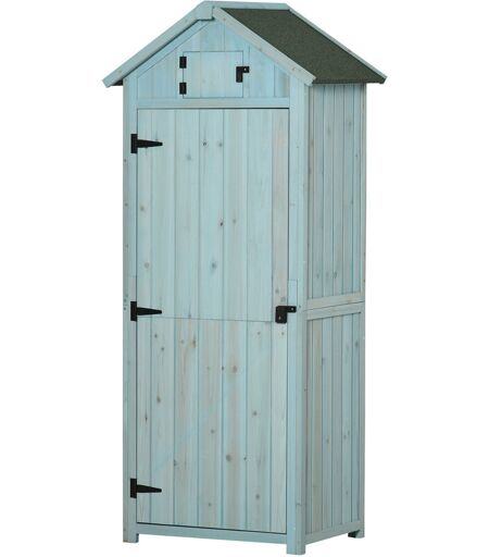 Outsunny - Armoire abri de jardin remise pour outils 3 étagères 2 portes loquets toit pente bitumé 77L x 54l x 179H cm sapin traité bleu