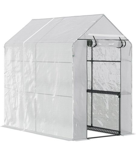 Outsunny - Serre de jardin 2 tablettes dim. 1,86L x 1,2l x 1,9H m porte déroulante acier pe haute densité 140 g/m² transparent blanc