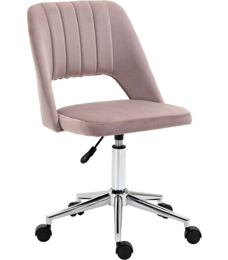 Vinsetto Chaise de bureau design contemporain dossier ergonomique ajouré strié hauteur réglable pivotante 360° piètement chromé velours rose poudré