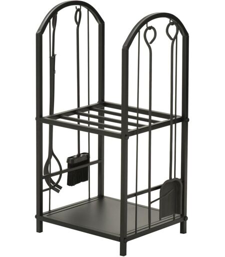 Outsunny Serviteur de cheminée - porte bûches - range bûches multi-accessoires 2 étagères métal noir