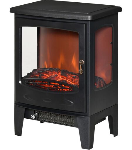 Homcom - Cheminée électrique poêle style néo-rétro 1000-2000 w simulation flammes led luminosité réglable acier abs noir