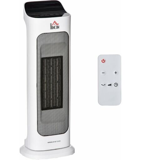 HOMCOM Chauffage soufflant oscillant 2000 W - radiateur céramique PTC - 3 niveaux de puissance - chauffage d'appoint avec télécommande blanc noir