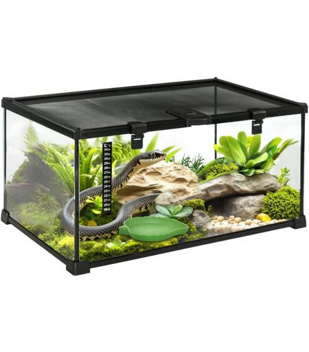 PawHut Terrarium en verre - vivarium reptiles & batraciens - habitat tortue - couvercle grillagé coulissant verrouillable - distributeur eau, thermomètre