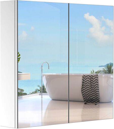 Homcom - Armoire miroir rangement toilette salle de bain meuble mural dim. 60L x 12l x 55H cm acier inox.