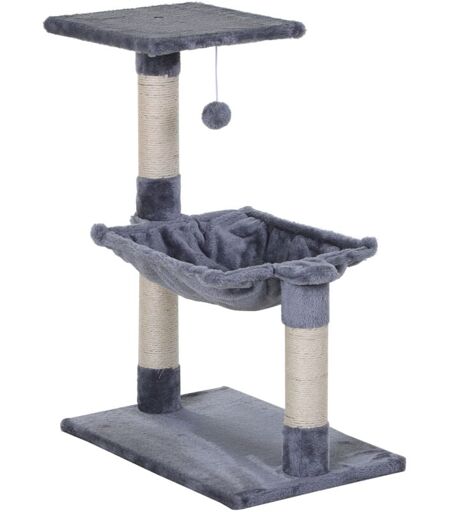 PawHut Arbre à chat 3 griffoirs grattoirs sisal naturel plateforme hamac et boule suspendue dim. 50L x 36l x 70H cm peluche haute densité 220 g/m² gris
