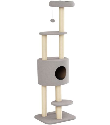 Pawhut - Arbre à Chats avec Griffoir Niche Poteaux Peluche Haute Densité 45L x 40L x 148H cm Gris