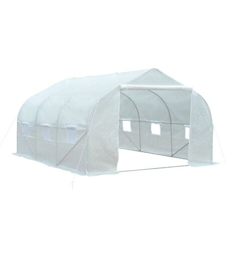 Outsunny Serre tunnel de jardin dim. 4,45L x 2,99l x 2H m porte + 6 fenêtres enroulables acier galvanisé bâche PE haute densité blanc