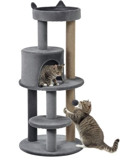 Pawhut - Arbre à chats multi-équipements griffoirs grattoirs plateformes niche jeu boule suspendue ø 48 x 104H cm gris