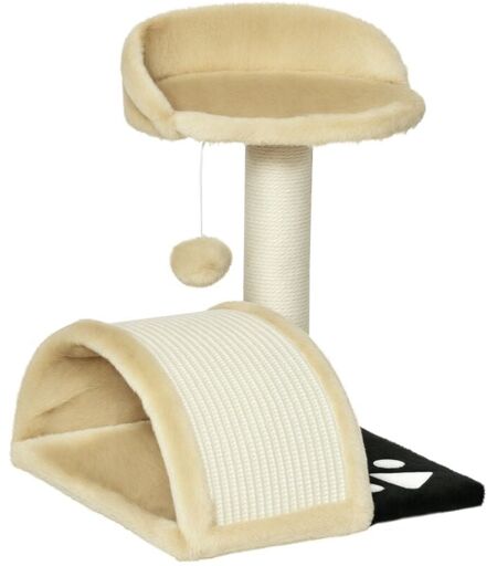 Pawhut - Arbre à chat griffoir grattoir design jeu boule suspendue + plateforme peluche sisal naturel beige