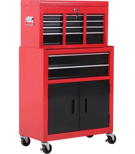 Homcom - Servante d'atelier - caisse à outil 6 tiroirs + coffre amovible - chariot d'atelier tôle métal rouge noir