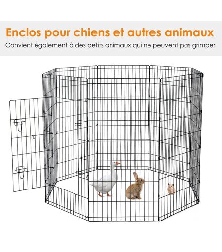 PawHut Parc Enclos Acier Pour Chien Animaux 1 Porte 8 Panneaux 76l X 61l Cm Noir