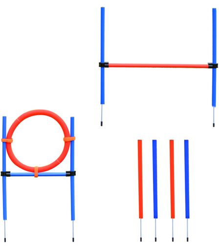 Pawhut - Agility sport pour chiens équipement complet obstacles et entrainement 11 pièces avec sac de transport acier rouge et bleu