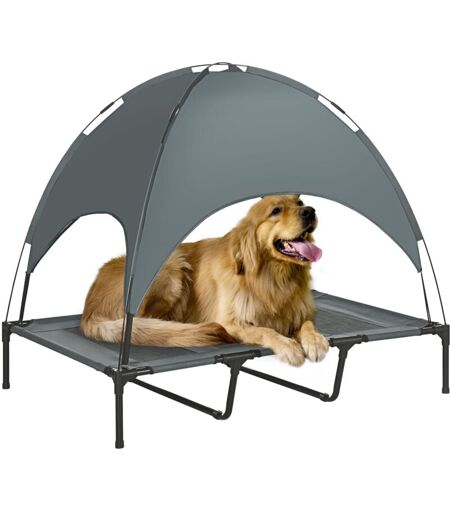 PawHut Lit pour chien chat sur pied velum anti-UV tissu Oxford micro-perforé sac transport inclus gris